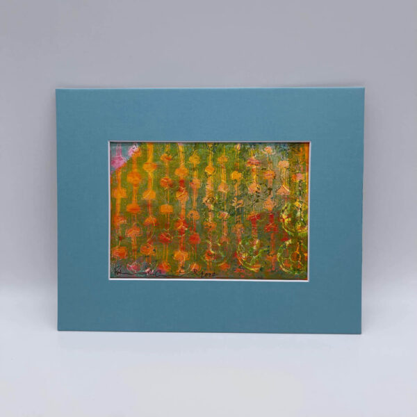 Golden Green Red Portcullis | Monoprinted Gel Print